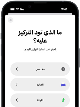 ينبغي ألا يشتت الهاتف انتباه أي شخص أثناء القيادة. ومع نمط تركيز القيادة، لن يقاطعك iPhone بالرسائل أو المكالمات أو الإشعارات إلى أن تصل إلى وجهتك. وفي حالة الطوارئ، يستطيع المتصل إبطال هذه الميزة للوصول إليك.