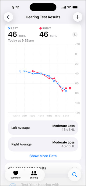 Private, secure and easy to manage. All your Hearing Test data is privately and securely stored in the Health app on your device. You can retake the test whenever you want, monitor your hearing over time, download your test results and read helpful articles about hearing health.