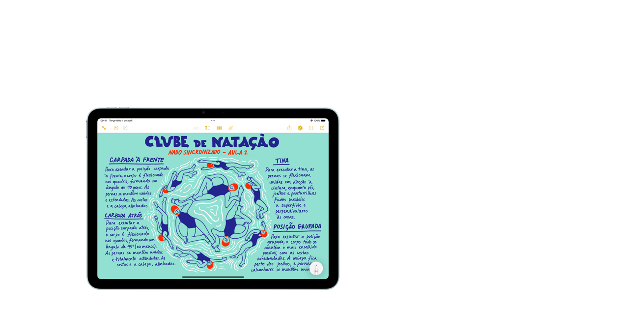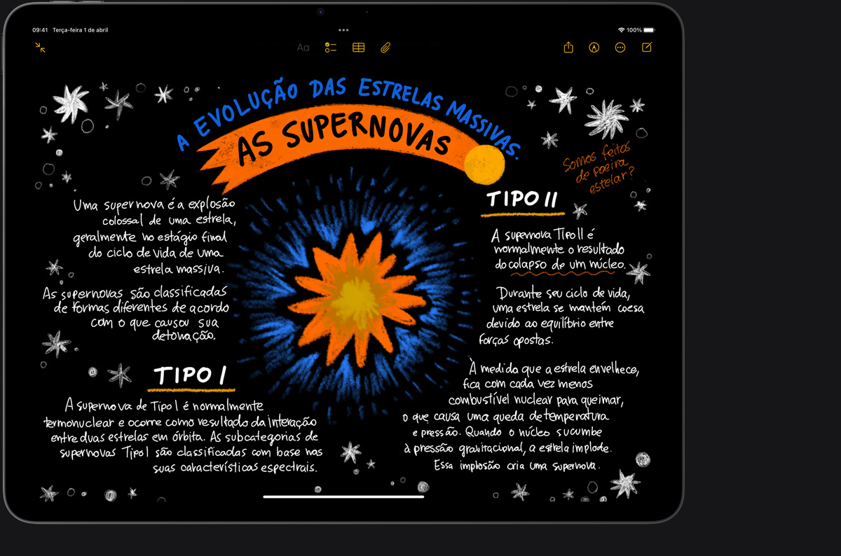 Com o Apple Pencil, tudo é intuitivo, preciso e mágico — não importa se você estiver desenhando, pintando, escrevendo ou fazendo marcações em documentos. Ele tem precisão absoluta, baixa latência, detecção de palma, e é sensível à inclinação. E o Apple Pencil Pro traz ainda mais funções para dar vida às suas ideias3.