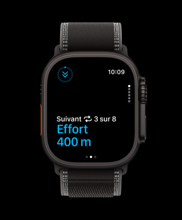 Apple Watch Ultra 3 est conçue pour mener de front plusieurs tâches. Aussi sportive qu’intelligente, elle vous suit avec une remarquable fluidité – de la réunion au cours de boxe, et de la séance de plongée jusqu’au resto. Prenez des appels, échangez des textos, écoutez de la musique en diffusion continue et payez vos achats n’importe où22. Tout ça avec vos plus récentes données de santé et des fonctionnalités de sécurité à portée de main, juste au cas. Elle ne s’appelle pas Ultra pour rien.