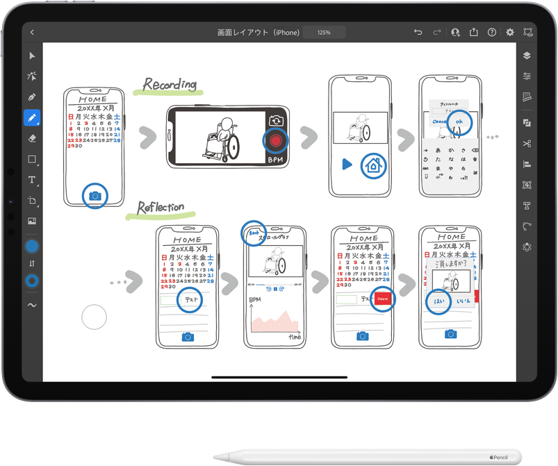 iPad Pro. El Dr. Iimura y sus alumnos usan el iPad, el Apple Pencil y Adobe Illustrator con el fin de darles forma a sus ideas para una app de accesibilidad que ayuda a los profesores a comunicarse con estudiantes no verbales.