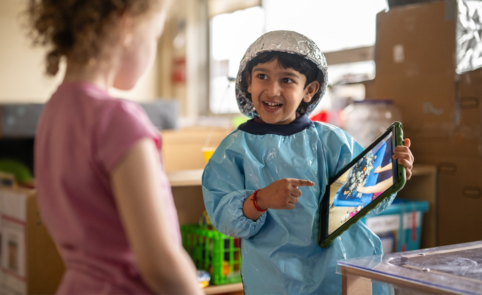 “Los estudiantes usan el iPad para compartir con todo el grupo e involucrarse con su propio aprendizaje”, comenta Kristin Malone, profesora del programa STEAM en Stowe. “Creo que muchas personas subestiman las capacidades de los niños de preescolar. Si te diriges a ellos como lo harías con un adulto y los tratas con el respeto que merecen, te sorprenderá lo que pueden lograr”.