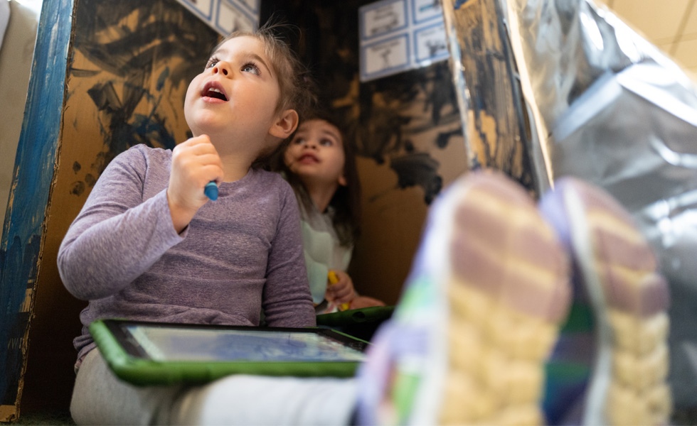 Stowe Early Learning Center combina un programa Head Start, un curso preescolar y una academia de STEAM, todo bajo un mismo techo. El centro pertenece al distrito escolar de Enfield, donde más del 50% de los estudiantes se encuentra en la categoría de altas necesidades. Sin embargo, gracias al compromiso del distrito con la igualdad de oportunidades, todos tienen un iPad. Esto ha permitido que los alumnos de apenas tres años puedan empezar a experimentar con estas poderosas herramientas.
