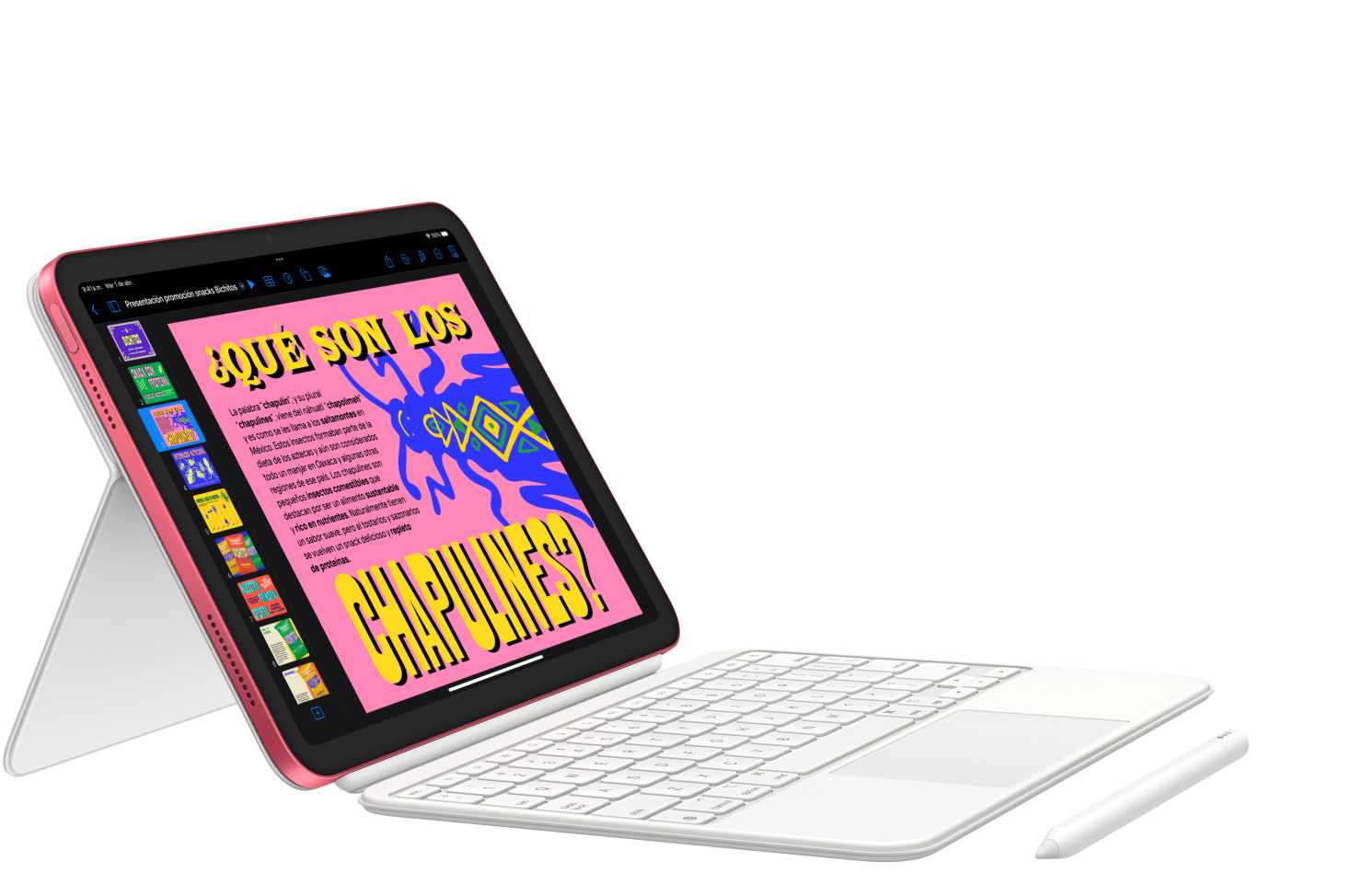 Sácale punta a tu creatividad con el Apple Pencil y el Magic Keyboard Folio. Protege tus obras de arte por ambos lados con un Smart Folio. Y usa el puerto USB-C para conectar discos duros, bases dock, monitores y mucho más.2