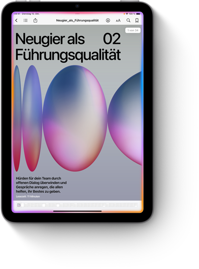 Das 8,3" Liquid Retina Dis­play ist mit True Tone, einem großen P3 Farb­raum und einer äußerst geringen Spiege­lung ausge­stattet. Das macht Texte ge­stochen scharf und die Farben ein­fach brillant, ganz egal, wo du bist.1
