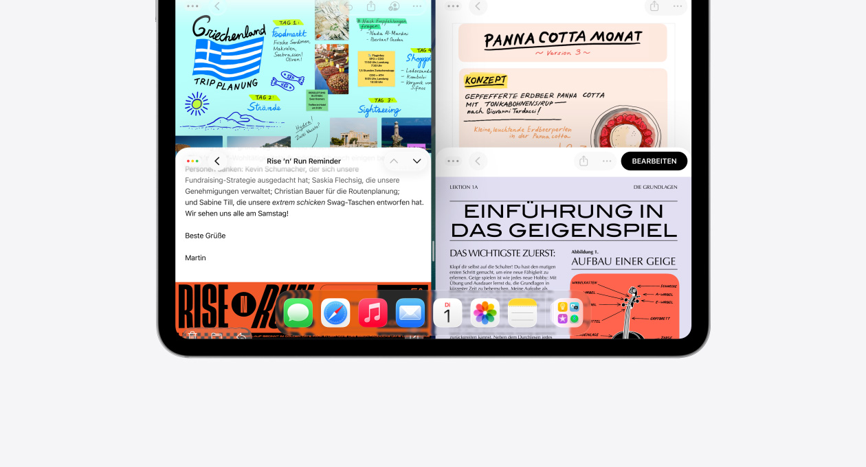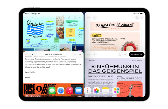 Ordne Fenster mit einem Streichen nach links oder rechts an. Und du kannst dein iPad Display jetzt auch in Drittel oder Viertel aufteilen.