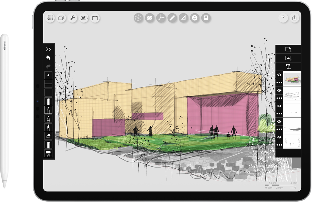 iPad Pro and Apple Pencil. Magos chooses iPad and its ecosystem of apps as the all-in-one powerhouse solution to teach and mentor architecture students. iPad with the Voxel Max app makes it simple to create and render 3D models, while the Morpholio Trace app and Apple Pencil provide endless tools to sketch and design details.