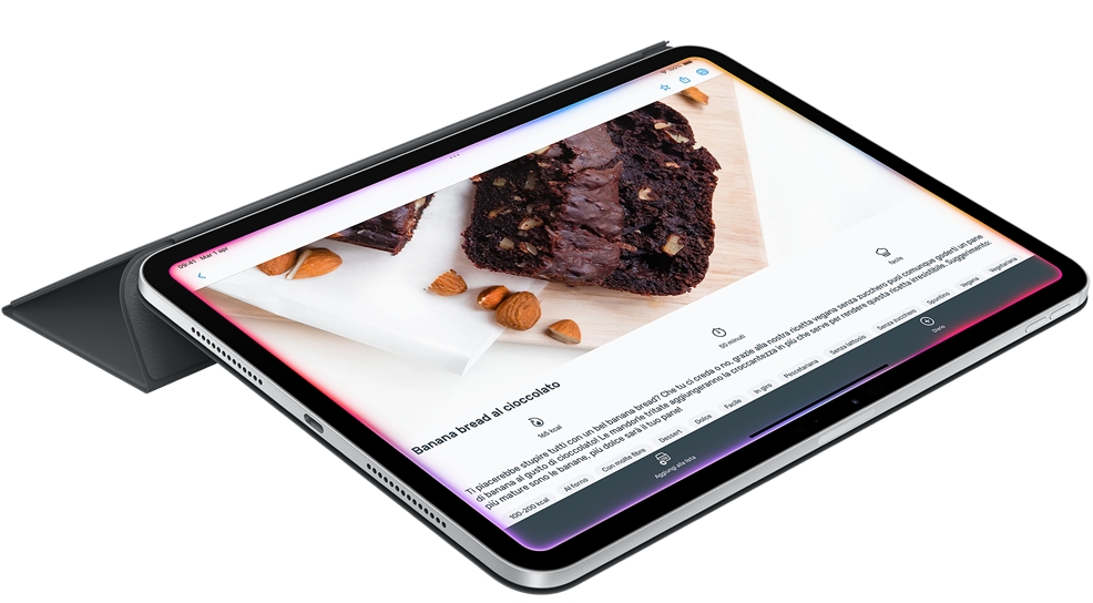 Fatti aiutare ai fornelli. Ora puoi impostare il timer del forno, calcolare gli ingredienti e chiamare tutti a tavola con l’interfono su HomePod, tenendo lontano il tuo iPad dagli schizzi di sugo.