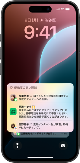 さまたげ低減は、急いで確認する必要があると思われる通知だけを強調する集中モードです。スタックの一番上に表示される優先通知は要約されているので、最も重要なことを一目で確認できます。