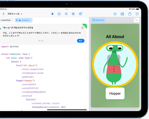 Swift Playgroundは、インタラクティブなパズルやコードの詳しい解説で、生徒たちをプログラミングやアプリデザインの世界へと導きます。