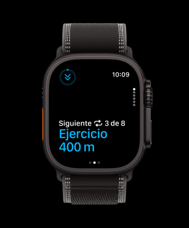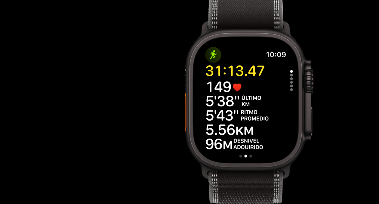 Hora de romper récords. El Apple Watch Ultra 3 tiene todo lo que necesitas para entrenar con más eficacia y alcanzar tu mejor versión. Supera tus límites con poderosas funcionalidades como el GPS de precisión y doble frecuencia, métricas avanzadas y Entrenamientos Personalizados.