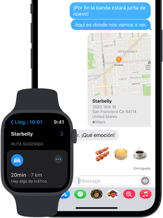 Disfruta de una experiencia fluida y sin interrupciones en todos los dispositivos Apple que usas para desplazarte. El Apple Watch te guía en la dirección correcta con una respuesta háptica para que no tengas que llevar tu iPhone en la mano cuando caminas. Las alertas de Calendario en tu Mac te avisan cuando es hora de dejar de trabajar para irte a casa. Y Mapas también se sincroniza automáticamente con Spotlight, Mensajes y Clima para entregarte información relevante en el momento adecuado.