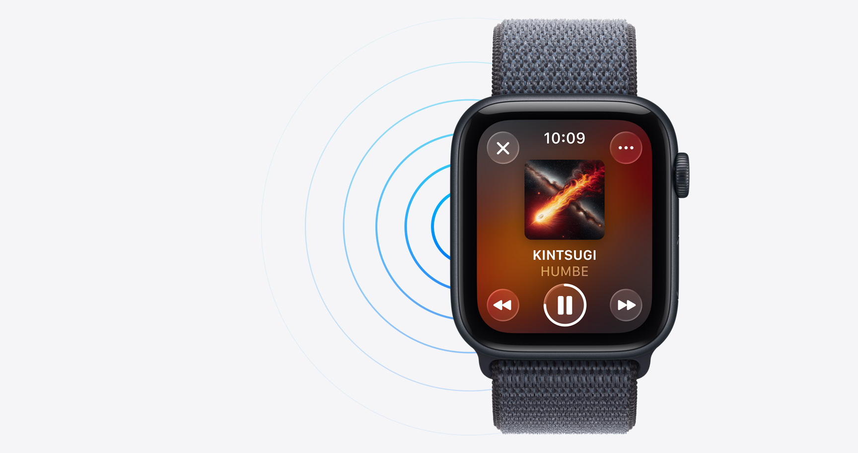 El Apple Watch SE 3 se conecta fácilmente a tus AirPods para que escuches música, audiolibros o podcasts sin usar las manos.6 Y si no traes tus AirPods, ahora puedes reproducir audio directamente desde la bocina de tu reloj.