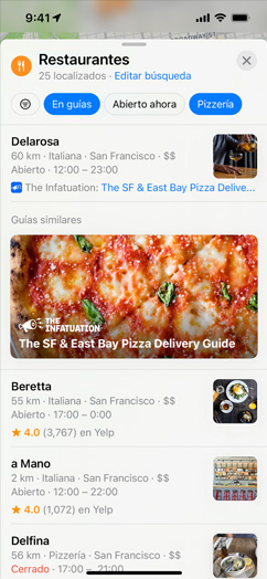 • La actualización a iOS 15, iPadOS 15 y macOS Monterey te permite disfrutar de las últimas funcionalidades de Mapas, como el globo interactivo, las experiencias en 3D para ciudades como San Francisco, Los Ángeles, Nueva York y Londres, el transporte público cercano y mucho más.