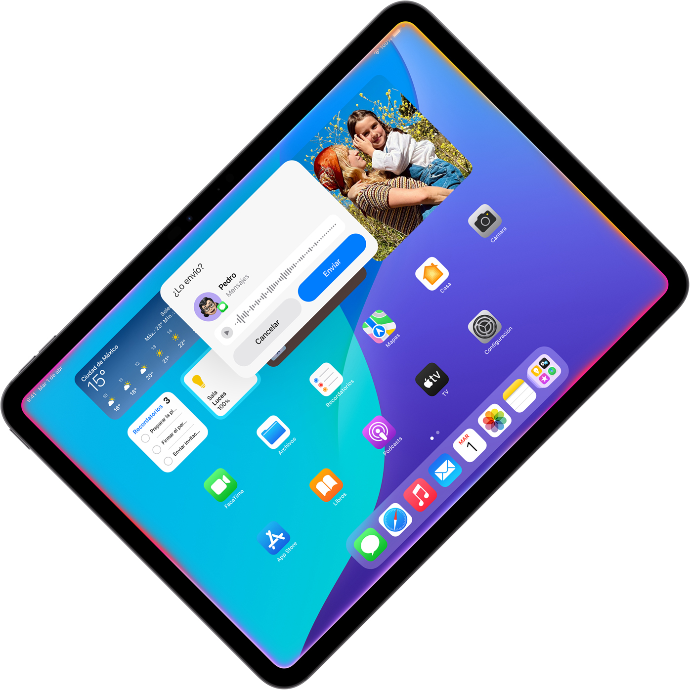 Haz más desordenando menos. Pon temporizadores, convierte medidas y llama a tu familia a la mesa con el Interfón del HomePod. Todo sin ensuciar tu iPad.