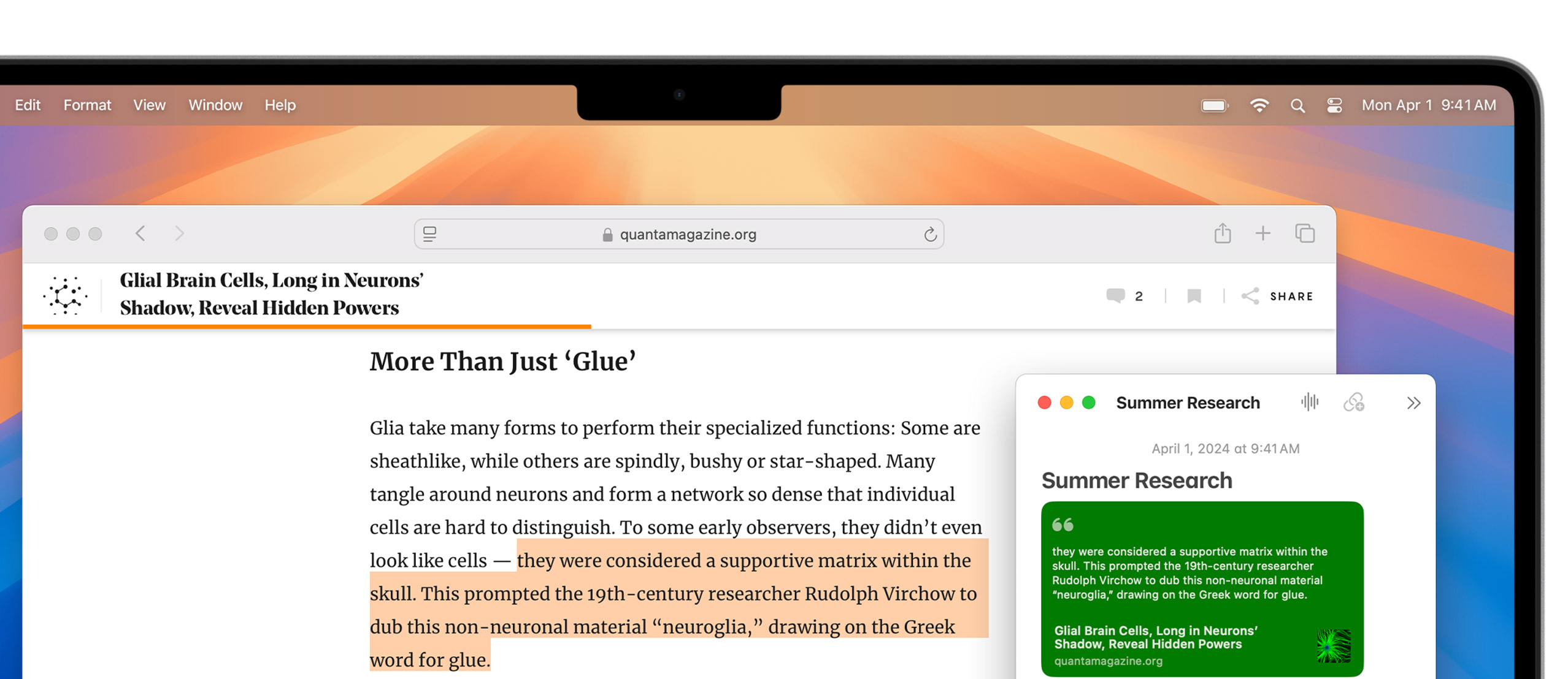 Notes is your go-to app to capture any thought. And with the Quick Note feature, you can instantly jot down ideas as you browse websites without having to leave Safari.