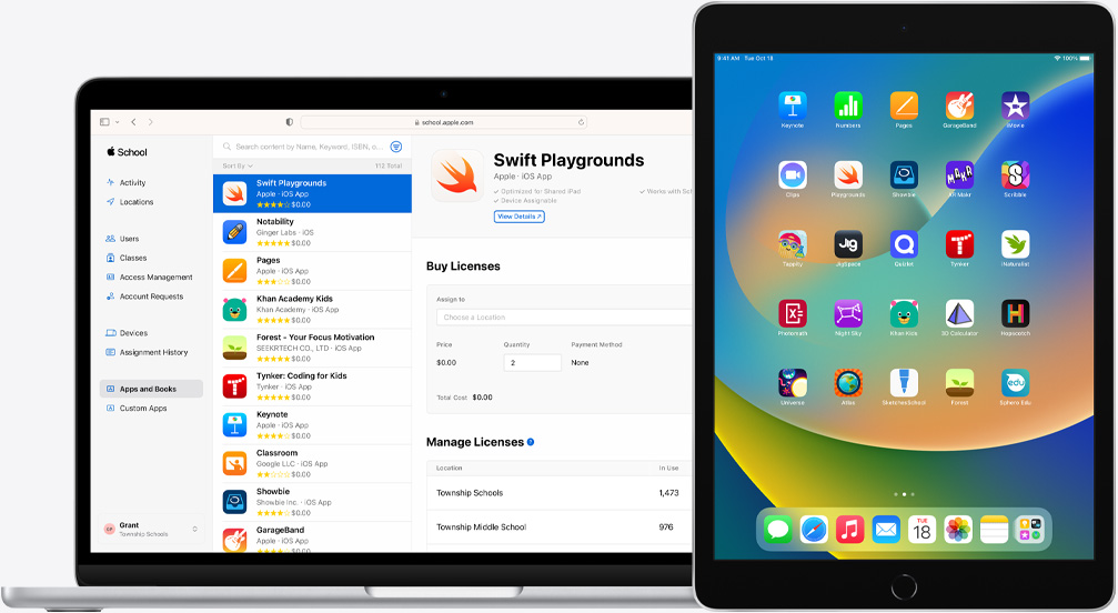 Po wdrożeniu urządzeń dział IT może używać usługi Apple School Manager i rozwiązań MDM do zdalnej konfiguracji, zarządzania dziesiątkami ustawień oraz szybkiego kupowania i udostępniania aplikacji i książek.