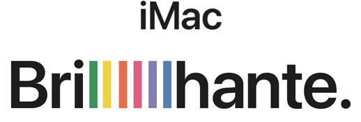 7 iMac em diferentes cores (verde, amarelo, laranja, rosa, roxo, azul e prateado) em acordeão