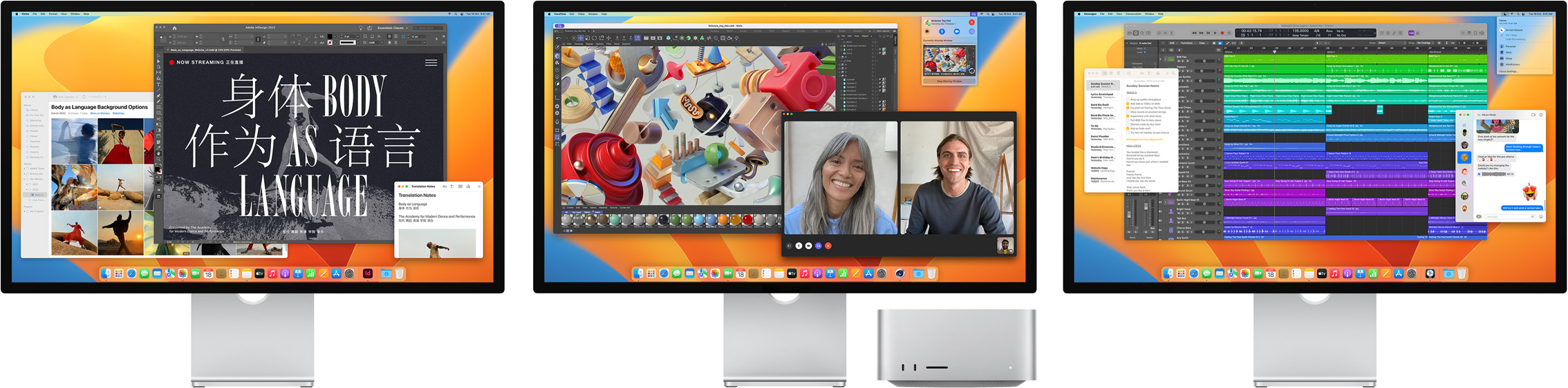 Our hardware and software are designed together. That integration is what enables amazing features like Center Stage and Spatial Audio. For pro workflows, macOS supports reference modes and fine-tune calibration so you can match industry standards — whether it’s HD and SD video or broader uses such as photography, web development, design, and print.