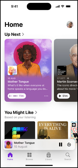 All your Apple devices come ready to play every podcast on the app — so whether you’re driving or jogging or cooking, you can keep the conversation going. You can even download programmes to your Apple Podcasts library and listen offline.