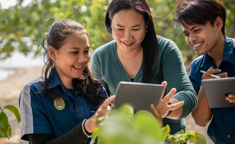 Still an active educator herself, introducing new instructional methodologies using technology is one of the most rewarding parts of Dr Chatmaneerungcharoen’s role. “In Phuket, we have a long tradition of supporting nature-based education — we head outdoors, or the environment comes into the classroom,” she says. In one lesson, her student teachers go out into the local mangroves to record photos and videos using Camera and Padlet on iPad, which they incorporate into their lesson plans to create localised, collaborative, project-based learning experiences for their students.