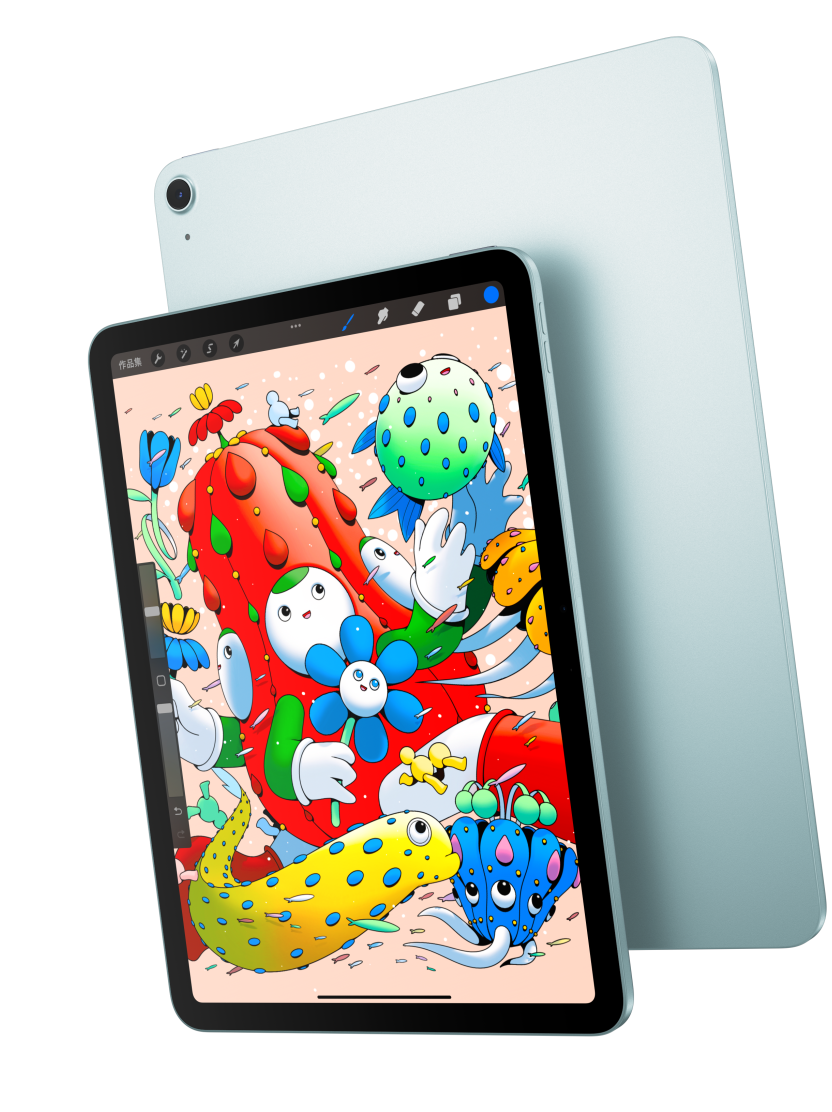 iPad Air 有 11 吋與 13 吋任你選擇,均配備絢麗的高解析度 Liquid Retina 顯示器,無論想用來做什麼,都能躍然眼前生動呈現。兩種尺寸的顯示器均明亮動人、反應靈敏且色彩精準,為你帶來出色的觀看體驗。