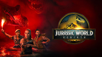 Apple TV 4k, two HomePods and a flatscreen television showing Jurassic World Rebirth