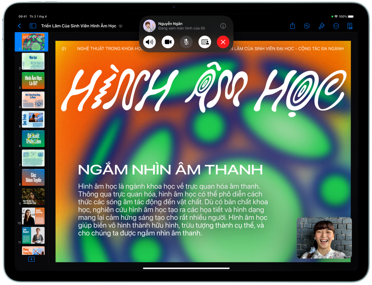 Bạn có thể chọn giữa iPad Air 11 inch và 13 inch, mỗi phiên bản đều sở hữu màn hình Liquid Retina tuyệt đẹp, có độ phân giải cao, để hiển thị sống động mọi thứ bạn thích làm. Cả hai màn hình đều mang lại trải nghiệm xem rực rỡ, nhanh nhạy với màu sắc chuẩn xác.
